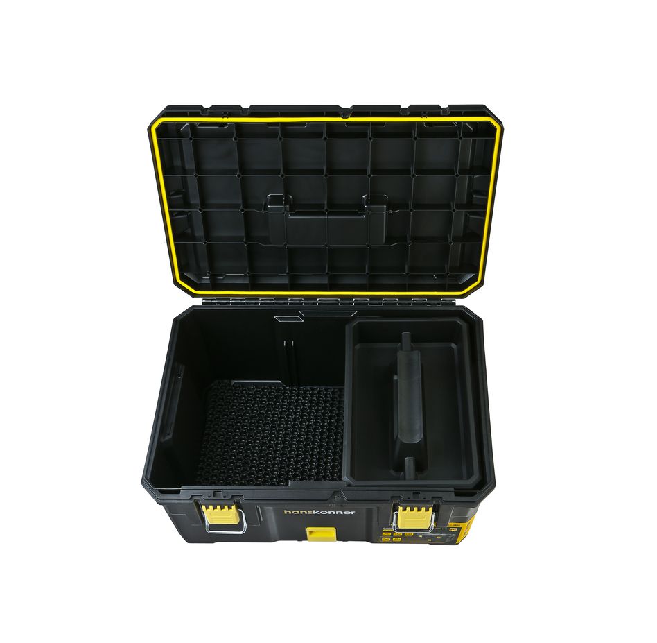 HSP280 Ящик модульный, часть системы хранения HANSTORAGE PLUS, размер M. Ящик снабжен обрезиненной рукоятью для удобства перемещения, а так же имеет внутри коврик из EVA- материала. Особенности: 1. FastLock-Легкая фиксация системы ящиков 2. Strong Body -Ударопрочный корпус 3. Дополнительное место для использования навесного замка 4. Высокий класс IP65 пыле- и водо-непроницаемости