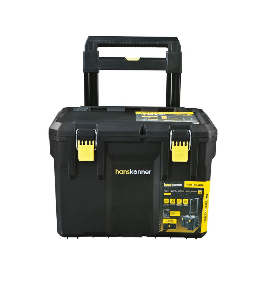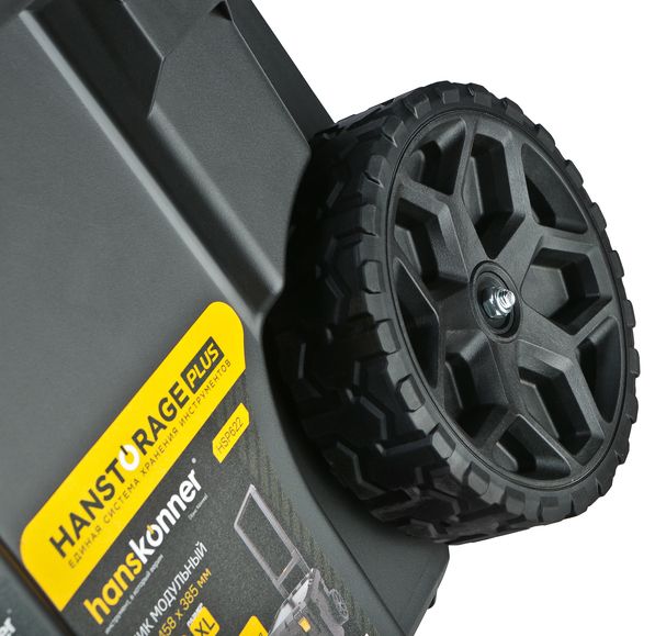 HSP622 Ящик модульный размер XL, часть системы хранения HANSTORAGE PLUS. Ящик снабжен прочными резиновыми колесами 8&quot для транспортировки и съемной телескопической рукоятью. Ящик имеет внутри разделительный пластиковый лоток и коврик из EVA- материала