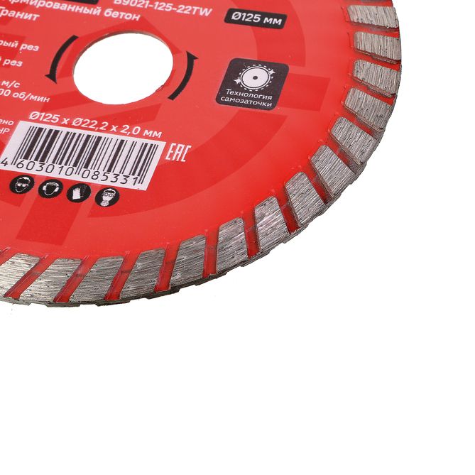 Высокое содержание алмазов и высота режущей кромки 10 мм увеличивают износостойкость и срок эксплуатации диска; технология самозаточки позволяет диску сохранять высокую скорость реза даже при длительной работе; тело диска из стали марки 65Mn для р