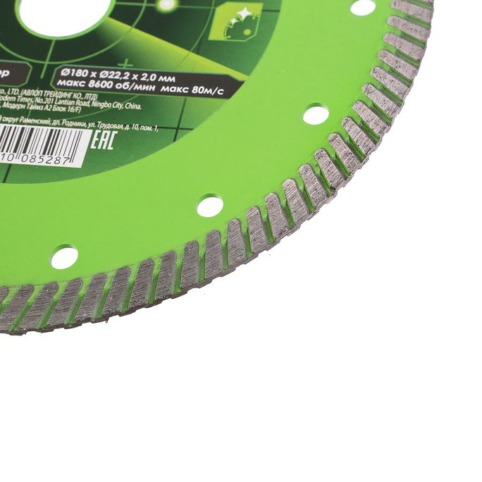 Высокое содержание алмазов и высота режущей кромки 10 мм увеличивают износостойкость и срок эксплуатации диска; технология самозаточки позволяет диску сохранять высокую скорость реза даже при длительной работе; тело диска из стали марки 65Mn для р