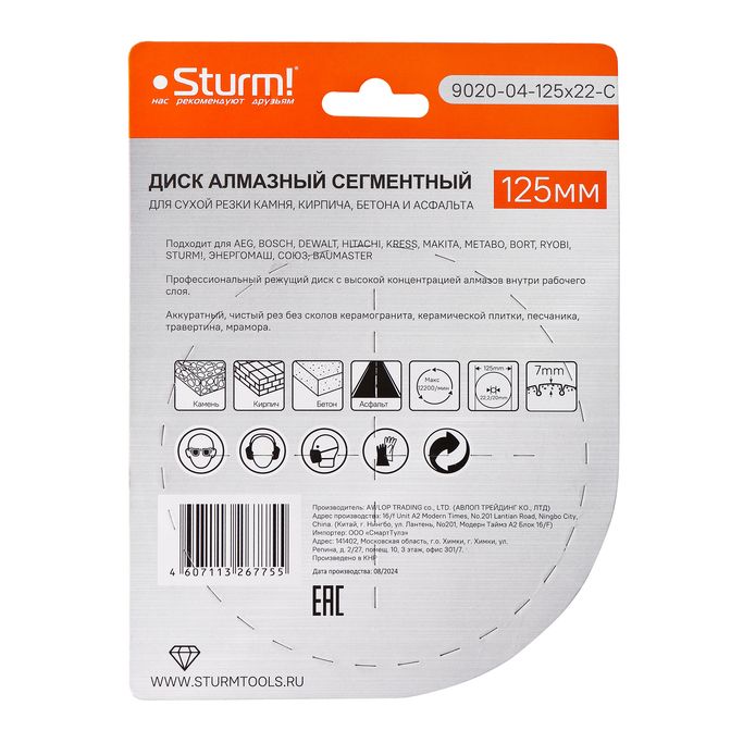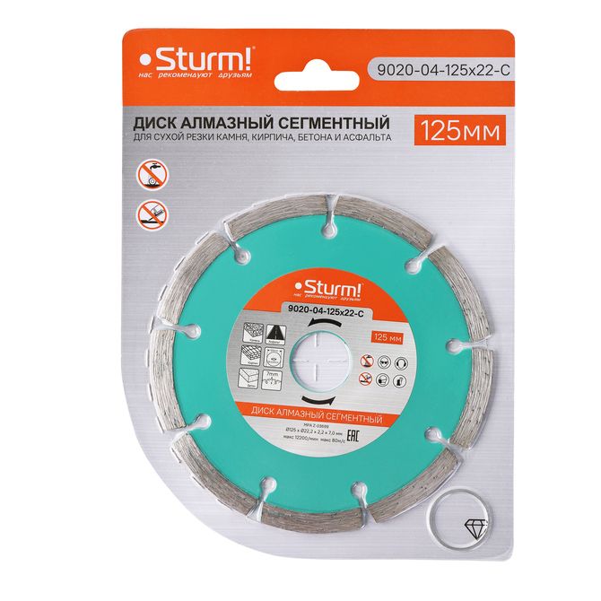 Читать все статьиАлмазный диск, сухая резка, сегментный 125мм Sturm!