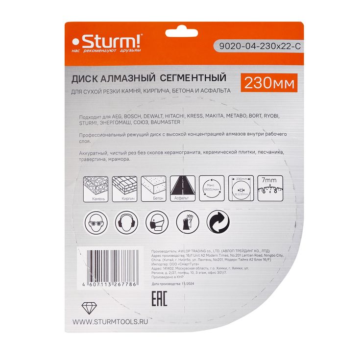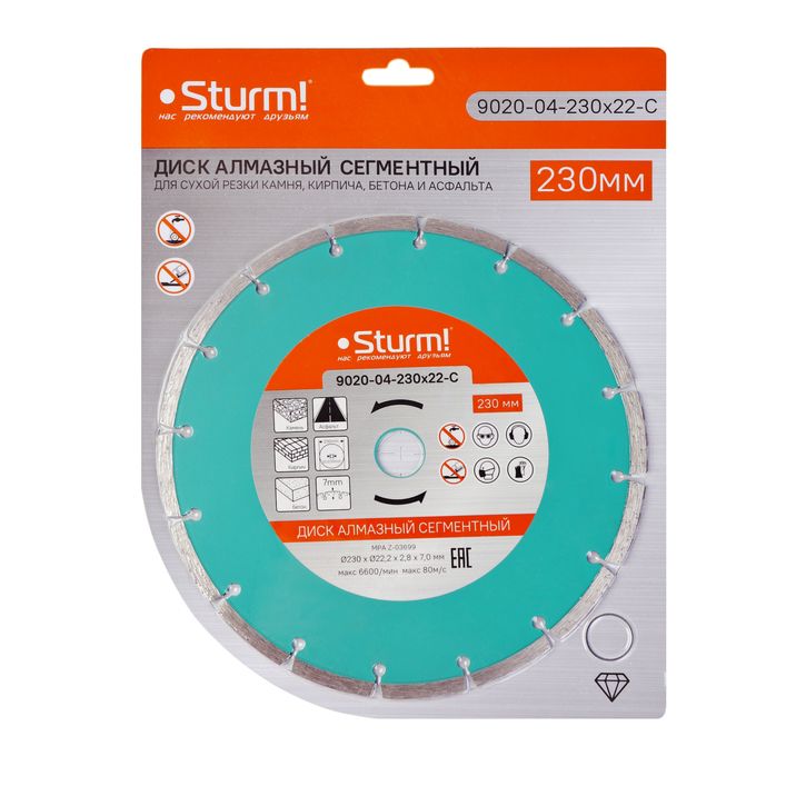 Читать все статьиАлмазный диск, сухая резка, сегментный 230мм Sturm!