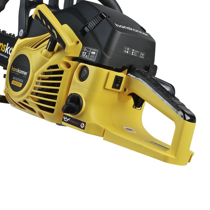 Бензиновая цепная пила Hanskonner HGC5218 – мощность и надежность для любых задач! Мощная и удобная бензиновая цепная пила HGC5218 с 18-дюймовой пильной шиной идеально подходит для валки деревьев, распиловки бревен и других работ в саду, на даче или в профессиональной деятельности. Преимущества моделей: - Мощный двигатель обеспечивает стабильную работу даже при высоких нагрузках - Мгновенная остановка цепи благодаря профессиональной системе DOUBLE-LOCK — всего за 0,12 секунды - Комфорт в работе благодаря системе SILENT TOUCH, которая значительно снижает вибрацию. - Продуманная эргономика. Данные модели отличный выбор: - Для профессионалов: высокая производительность и надёжность для ежедневной работы - Для садоводов: лёгкость в обслуживании и безопасность при обрезке деревьев - Для владельцев частных домов: универсальное решение для всех хозяйственных работ