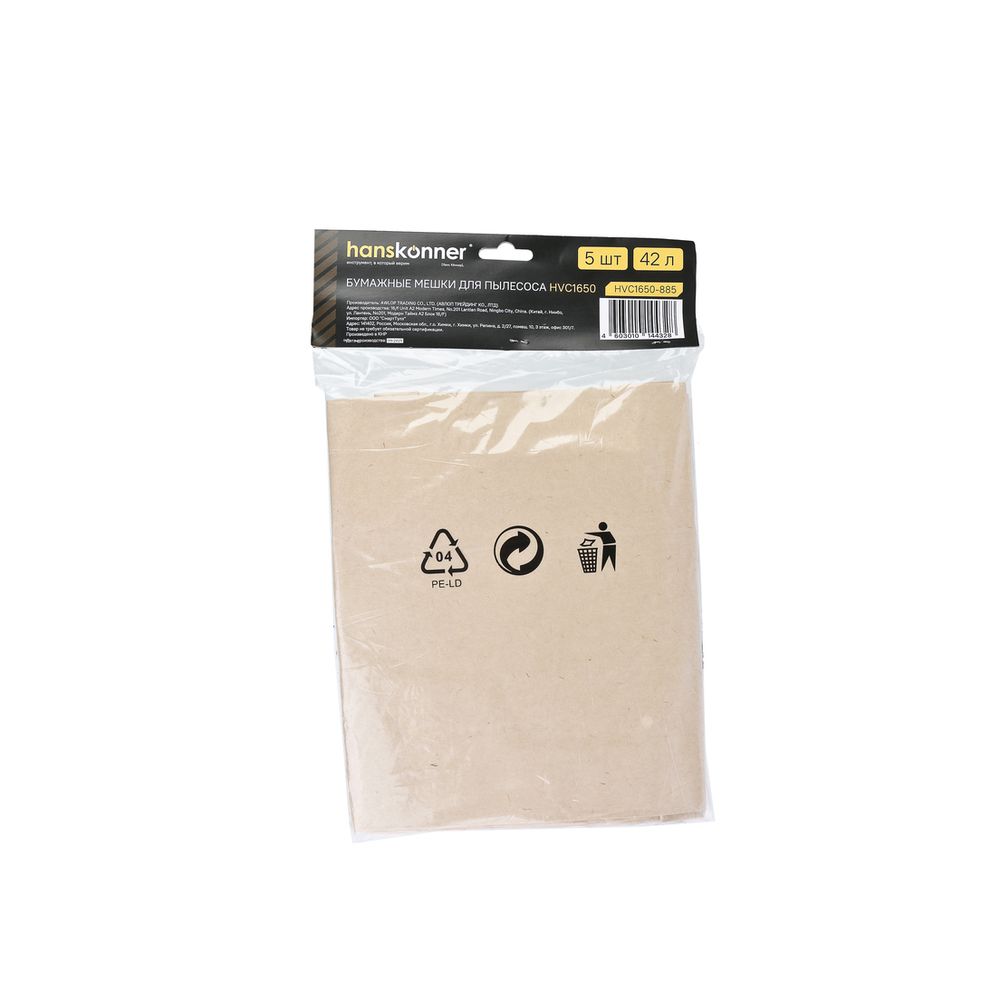 Читать все статьиБумажные мешки для пылесоса HVC1650 42л Hanskonner, 5шт/уп
