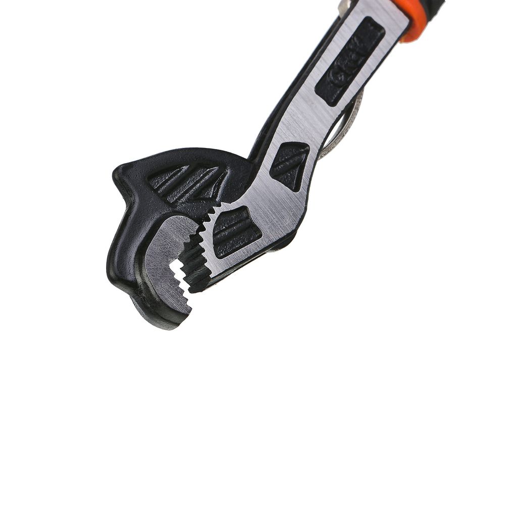 Износостойкие губки из 40Cr стали плотно фиксируют деталь. Трёхсторонний захват крепежа (Three-way grip System) обеспечивает максимальную передачу усилия. Не соскальзывающий сильный и стабильный зажим. Тефлоновое покрытие TeflonShield защищает важные части ключа от коррозии Универсальное применение для крепежа различной формы и самостоятельная настройка губок под допустимый диаметр.