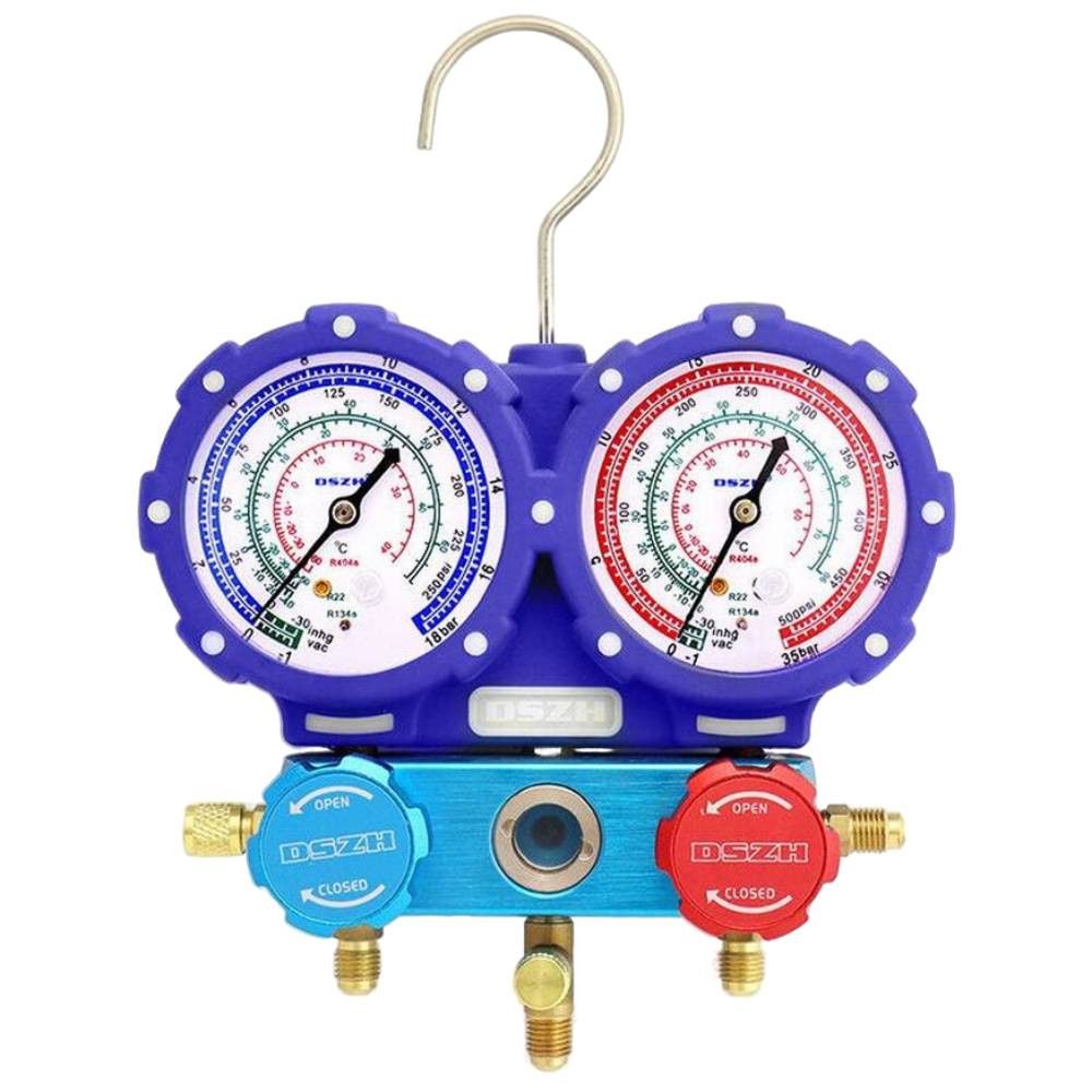 Шкалы фреонов нанесенных на манометры: R22/404/407/410. Диаметр манометров 68 мм. Поставляется в комплекте с заправочными шлангами длиной 90 см 1/4" SAE (600 PSI).