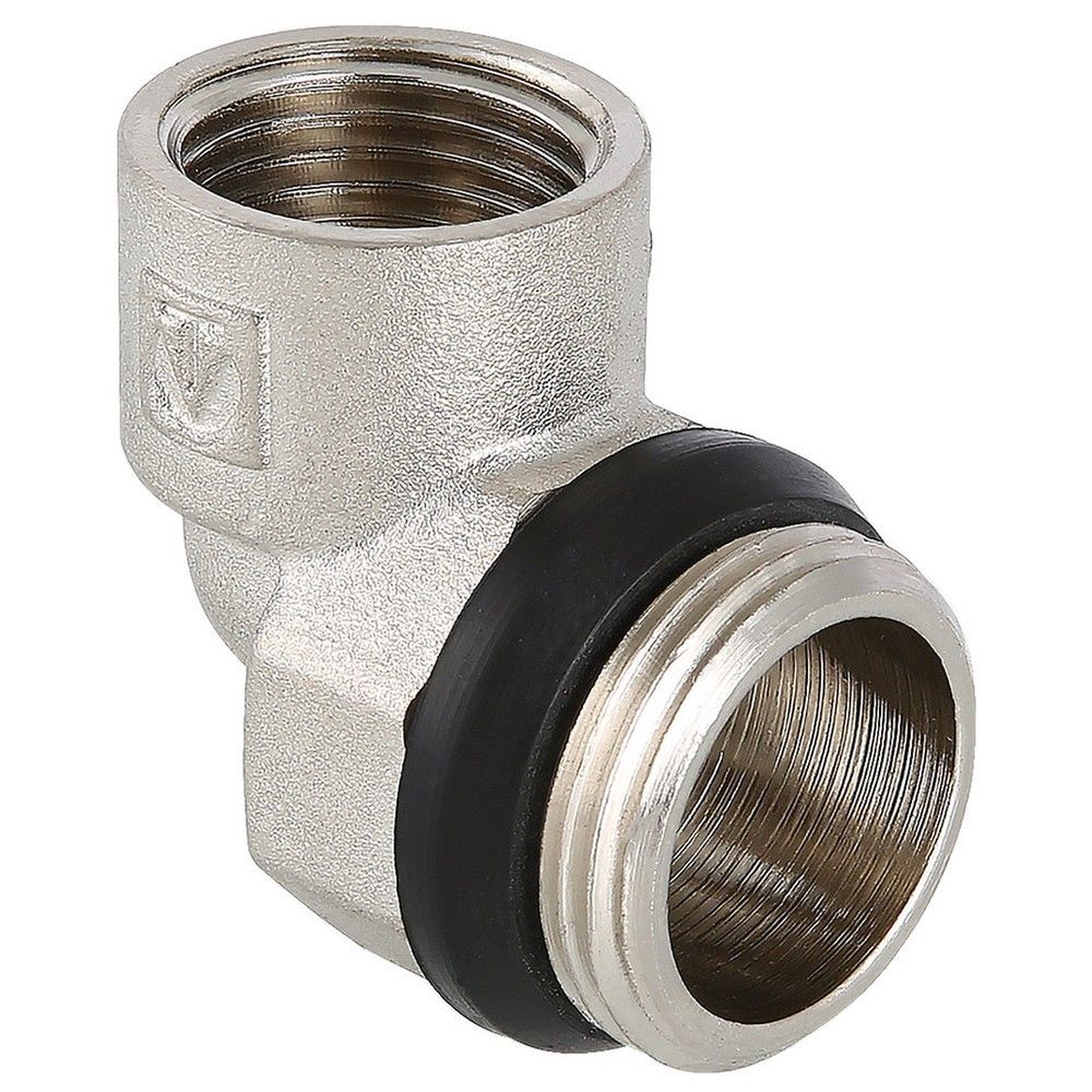 (VTc.531.N) Латунный никелированный резьбовой фитинг – коллекторный отвод (угольник). Предназначен для присоединения к распределительному коллектору воздухоотводчика. Применяется вместо коллекторного тройника в случае, если присоединения других устройств не требуется. Резьба – наружная/внутренняя.