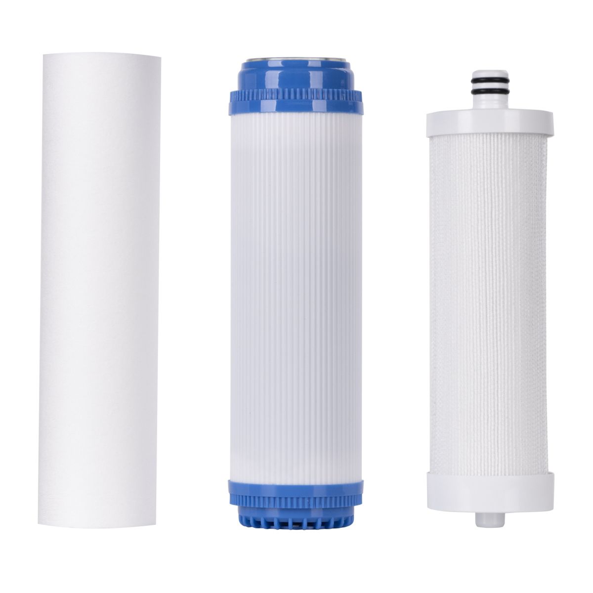 Механический фильтр с градиентной структурой. Срок службы увеличен на 30% по сравнению с аналогичными ступенями очистки. За счет градиентной структуры степень фильтрации меняется с 10 до 5мкм по мере прохождения воды через фильтр, что позволяет задействовать всю площадь фильтрующего элемента и распределить загрязнения более равномерно не забивая верхние слои.