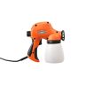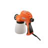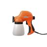 Простая в управлении модель обеспечивает равномерное нанесение краски и получения качественного результата работы. Универсальный инструмент предназначен для эффективного использования как в окрасочных мастерских, так и в домашнем хозяйстве. Данная модель подходит для проведения наружных и внутренних работ по нанесению красок, лаков и растворимых полиролей. Нижнее расположение резервуара для краски и малый вес распылителя делает инструмент удобным при длительном использовании. Сменные насадки, обычное или гибкое сопло, помогут быстро настроить распыляемую струю, а плавная установка расхода краски поможет получить превосходный результат на окрашиваемой поверхности. Благодаря плавной регулировке воздушного потока непосредственно в процессе покраски инструмент распыляет быстро и удобно любые виды красок по древесине и металлу без пятен и наплывов. Поверхность не играет при этом особой роли и нанесение краски не вызовет никаких затруднений. Производимый распылителем тонкодисперсный эмульсионный поток обеспечивает оптимальное распределение краски как на больших поверхностях, так и в небольших зазорах и углах. Практичная система тонкого распыления обеспечивает равномерную подачу краски даже при работах в стесненный условиях, над головой и вблизи пола. С помощью системы тонкого распыления обеспечивается легкое и равномерное нанесение лаков и красок и отличный внешний вид конечного покрытия. Регулировка расхода краски может производиться непосредственно во время выполнения работ с помощью удобного поворотного переключателя. Дополнительным преимуществом станет быстрое заполнение краской и несложная очистка системы без значительной потери краски после завершения работ благодаря ее практичной конструкции. Безопасный удобный выключатель облегчает работу в непрерывном режиме и обеспечивает мгновенное отключение инструмента одним нажатием при необходимости. Для мобильного использования модель оснащена очень компактным корпусом и удлиненным не спутывающимся эластичный полимерный кабелем, который обеспечивает надежное питание инструмента в любых условиях.
