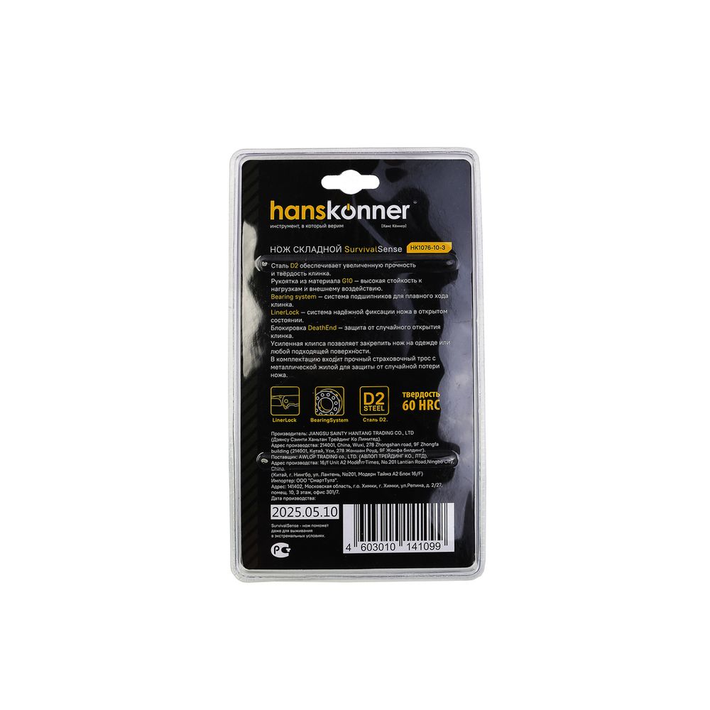 Читать все статьиНож складной, лезвие 85мм, сталь D2, рукоятка G10, hanskonner