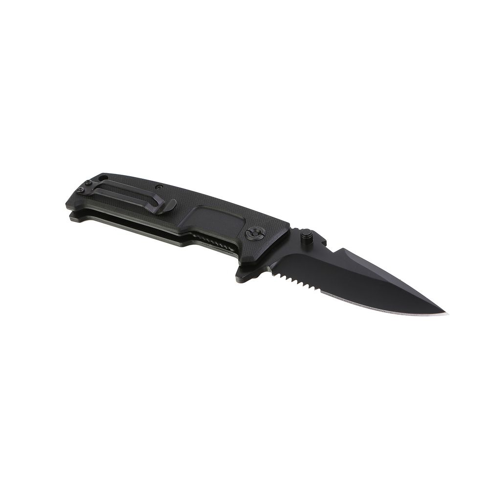 Сталь D2 обеспечивает увеличенную прочность и твёрдость клинка. Рукоятка из материала G10 — высокая стойкость к нагрузкам и внешнему воздействию. Bearing system — система подшипников для плавного хода клинка. LinerLock — система надёжной фиксации ножа в открытом состоянии. Блокировка DeathEnd — защита от случайного открытия клинка. Усиленная клипса позволяет закрепить нож на одежде или любой подходящей поверхности. В комплектацию входит прочный страховочный трос с металлической жилой для защиты от случайной потери ножа. Специальный боёк на рукоятке для разбивания стекла при экстренной необходимости. Лезвие с зазубринами для увеличения эффекивности резки канатов и прочих вязких материалов.