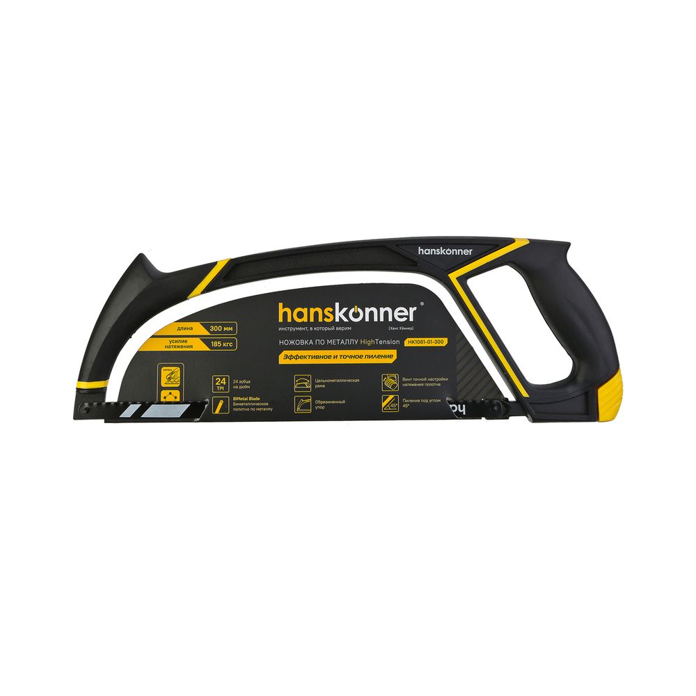 Читать все статьиНожовка по металлу 300мм, усиленная, bi-metal полотно, hanskonner