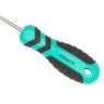 Отвертки имеют эргономичную двухкомпонентную рукоятку с рифлениями, исключающими проскальзывание, мягкая поверхность рукоятки делает работу комфортной. Рабочая часть выполнена из качественной инструментальной хром-ванадиевой стали, что определяет ее прочность и износостойкость. Жало отвертки намагничено для удержания метизов при работе.
