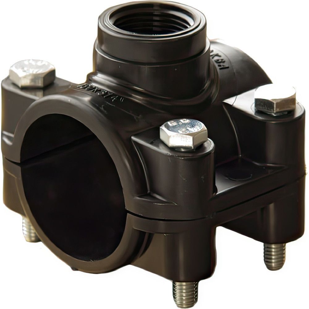 Седелка с внутренней резьбой предназначена для быстрой установки на основную (магистральную) пластиковую трубу дополнительного ответвления. Крепится к трубе ПНД при помощи зажимных болтов. Седелки хорошо зарекомендовали себя, как элементы быстрой врезки, а так же как герметичные резьбовые отводы, устанавливаемые без разрезания трубы.