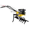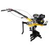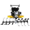 Сельскохозяйственная машина HUTER МК-7000P-10 используется для обработки почвы методом культивации, то есть её рыхления без переворота почвы, выравнивания, других операций. Агрегат дает хорошие результаты на приусадебных и фермерских хозяйствах и дачных участках, на ограниченных территориях, междурядьях, на клумбах и возле деревьев. Мотокультиватор укомплектован четырёхтактным двигателем внутреннего сгорания.МК-7000P-10 обладает всеми преимуществами МК-7000, но комплектуется большими колесами 10.Устройство - Двигатель. На сельскохозяйственных машинах HUTER применяются бензиновые двигатели внутреннего сгорания. Двигатели культиваторов снабжаются автоматическими регуляторами частоты вращения, упрощающими работу оператора. Диапазон номинальной мощности линейки наших культиваторов позволяет выбрать подходящий для любых видов работ. - Сцепление и редуктор обеспечивают передачу вращающего момента от двигателя на рабочий вал. - Система агрегатирования предназначена для сопряжения машины с навесным оборудованием, которое устанавливается на рабочую ось или раму. - Система управления. Так как вовремя земляных работ оператор шагает за сельскохозяйственной машиной, все органы управления должны приводиться в действие только руками оператора.Технические характеристики - Мощность – определяет производительность культиватора. Чем мощнее двигатель установлен на культиватор, тем более жесткую почву и большую глубину он может обрабатывать. - Скорости – позволяют выбрать подходящий диапазон для более качественной обработки почвы, а также облегчают извлечение из земли агрегата после окончания работ посредством задней передачи. - Ширина обработки – зависит от установленных лезвий, может достигать до 85 см со стандартными лезвиями и до 120см с дополнительными. Чем больше ширина обработки, тем эффективней работа культиватора. Но бывает необходимо вспахивать узкие полоски земли, для чего лезвия имеют составное устройство, т.е. есть возможность обрабатывать полосы шириной 30 и 50см. - Глубина обработки – зависит от мощности двигателя и установленных лезвий. Чем больше глубина обработки, тем более качественно и эффективно будет вспахана почва. - Объем топливного бака – определяет время непрерывной работы культиватора без дозаправки.Особенности - Возможность регулировки глубины и ширины обработки почвы. - Защита от низкого уровня масла. При уровне масла ниже допустимого сельскохозяйственные машины и мотокультиваторы Huter не заводятся глохнут, если это случилось во время работы. - Возможность выбрать скорость (для тяжелых и средних культиваторов) и две скорости работы "вперед и назад" для всей линейки культиваторов. - Колесо в передней части сельскохозяйственной машины для удобства перемещения, либо стояночная опора (сошник) в задней для удобства хранения. - Возможность простой разборки культиватора обеспечивает удобство при транспортировке и хранении.