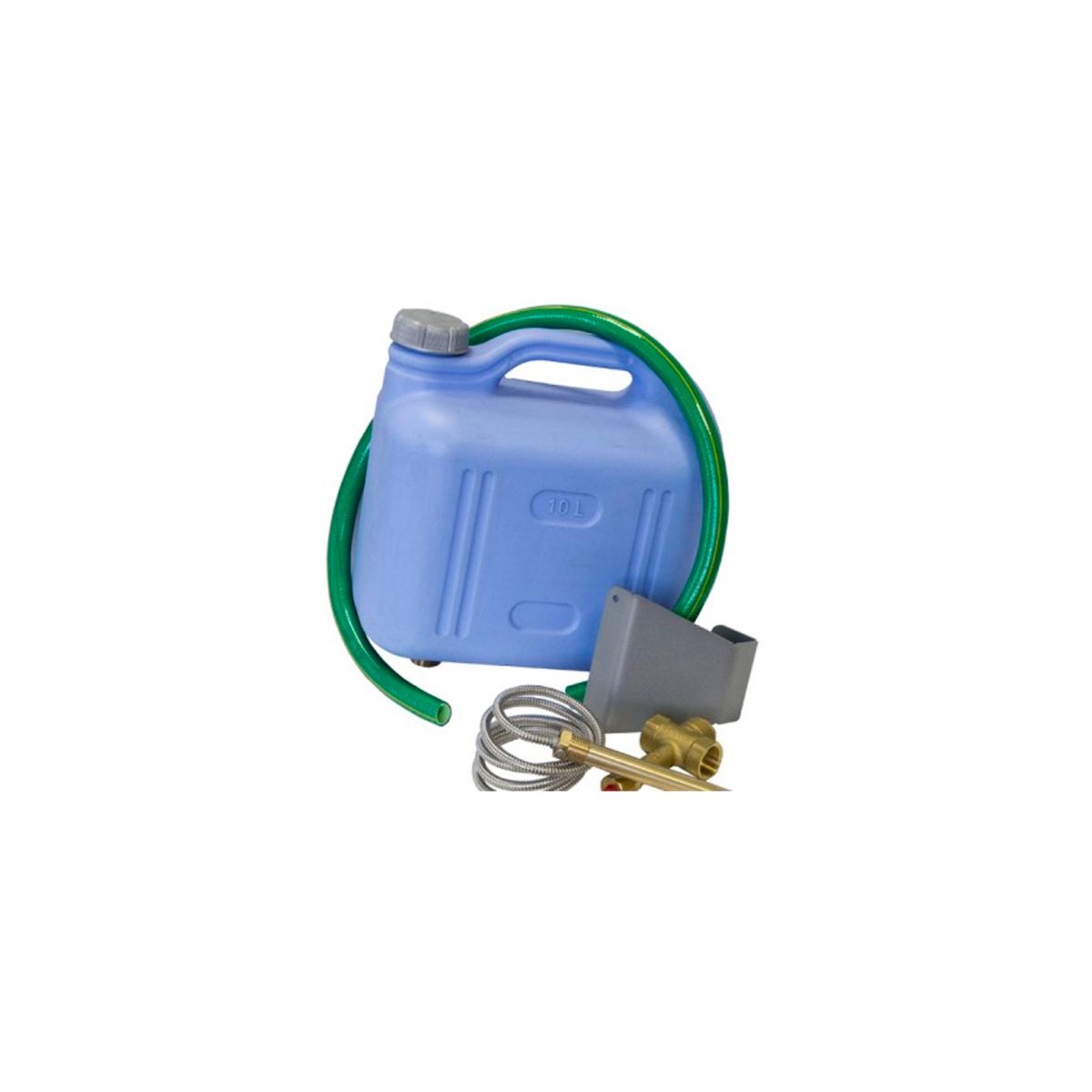 Комплект охлаждения топливопровода ZOTA "Optima/Forta" состоит из бака для воды, который крепится на штатные кронштейны котлов Optima и Forta, шланга и термостатического клапана. В случае перегрева топливопровода клапан срабатывает и открывает проток для воды из бака, тем самым предотвращая возгорание топлива в бункере. Поставляется опционально.