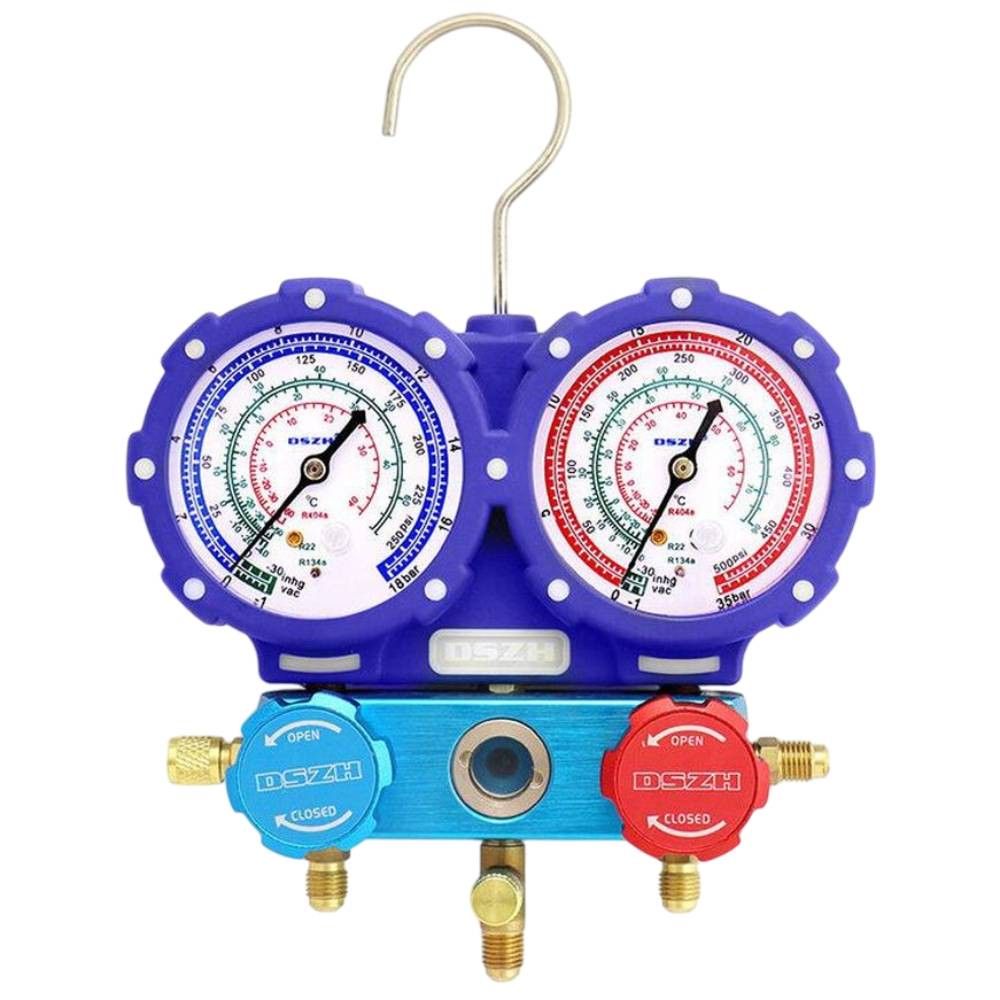 Манометрический 2 вентильный коллектор DSZH WK-C3601S универсален под все виды наиболее используемых фреонов.