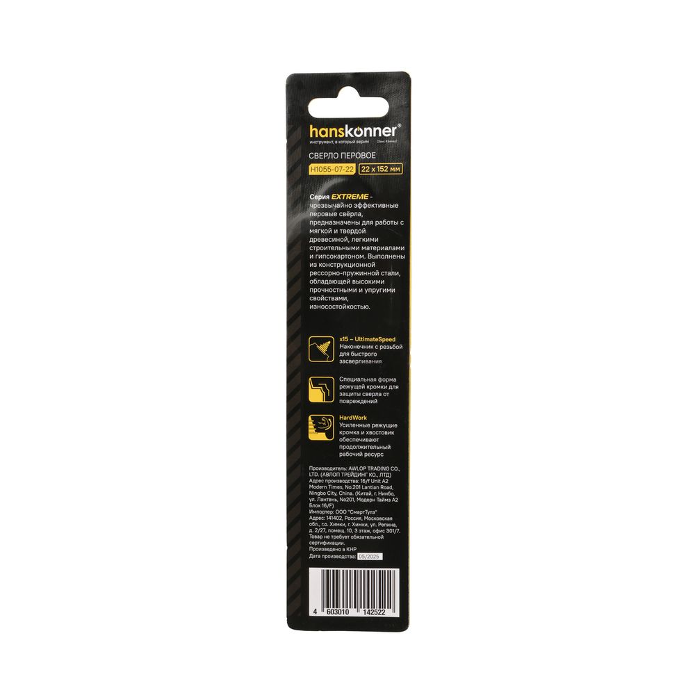 Читать все статьиСверло перовое по дереву 22мм, высококачеств. сталь, шестигр. хвостовик, Hanskonner