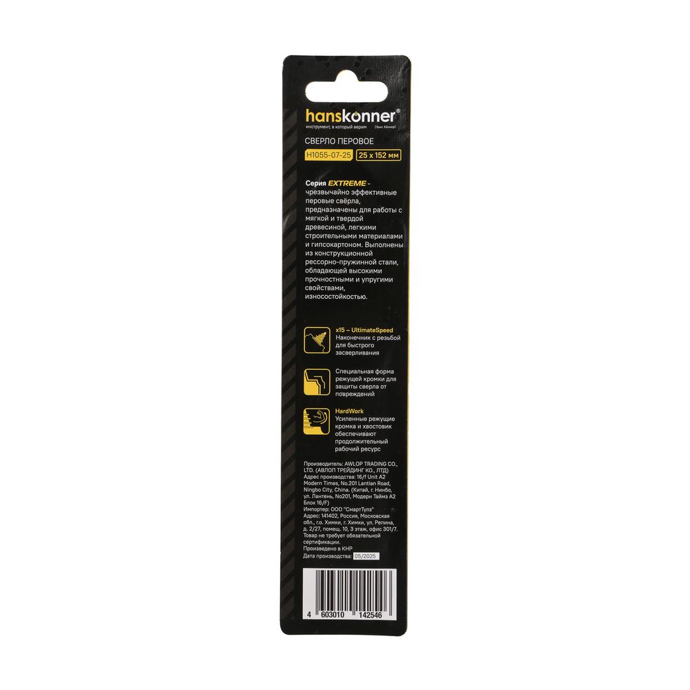 Читать все статьиСверло перовое по дереву 25мм, высококачеств. сталь, шестигр. хвостовик, Hanskonner