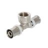 Пресс-тройник предназначен для создания разветвлений в трубопроводных системах из металлопластиковых труб. Соединительный элемент имеет два равных по диаметру выхода и один выход с резьбовым соединением, что позволяет осуществлять переход между разными типами соединений.