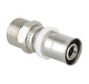 Корпус фитинга выполнен из латуни CW617N (EN 12165), обжимная гильза выполнена из нержавеющей стали AISI 304 (EN 10088-2), уплотнительные кольца - EPDM (этиленпропиленовый каучук), диэлектрическое кольцо PE-LD - (полиэтилен низкой плотности).