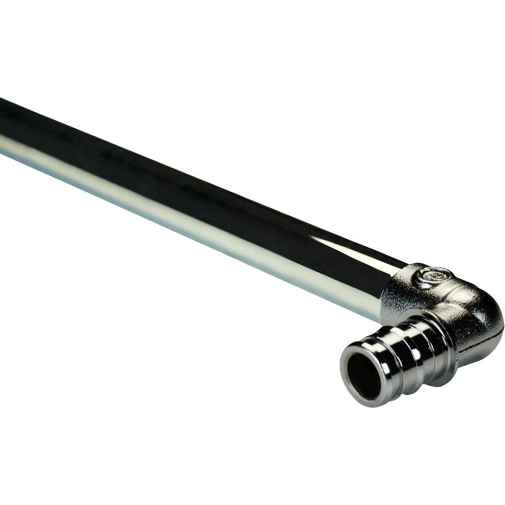 Угольник GX128 с хромированной трубкой размером 20×15 мм, длиной 250 мм, предназначен для подключения радиаторов в системах отопления и водоснабжения
